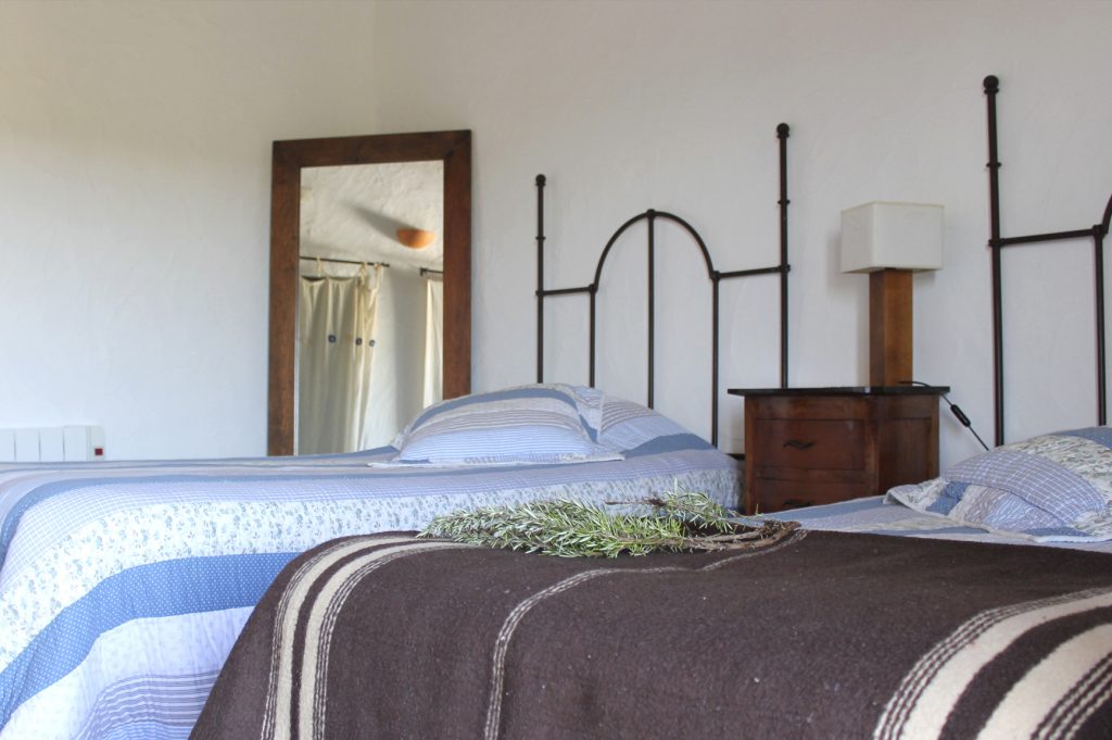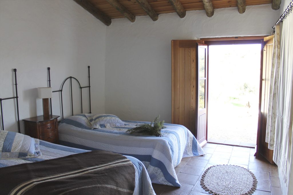 O quarto, de camas duplas, com roupeiro e wc, é amplo e luminoso. A comunicação entre o espaço interior e o exterior é facilitada por uma porta envidraçada que revela toda a beleza da paisagem alentejana. Aproveite bem o dia: o raiar do sol convida à descoberta do jardim da casa – abra a porta e saúde a natureza!