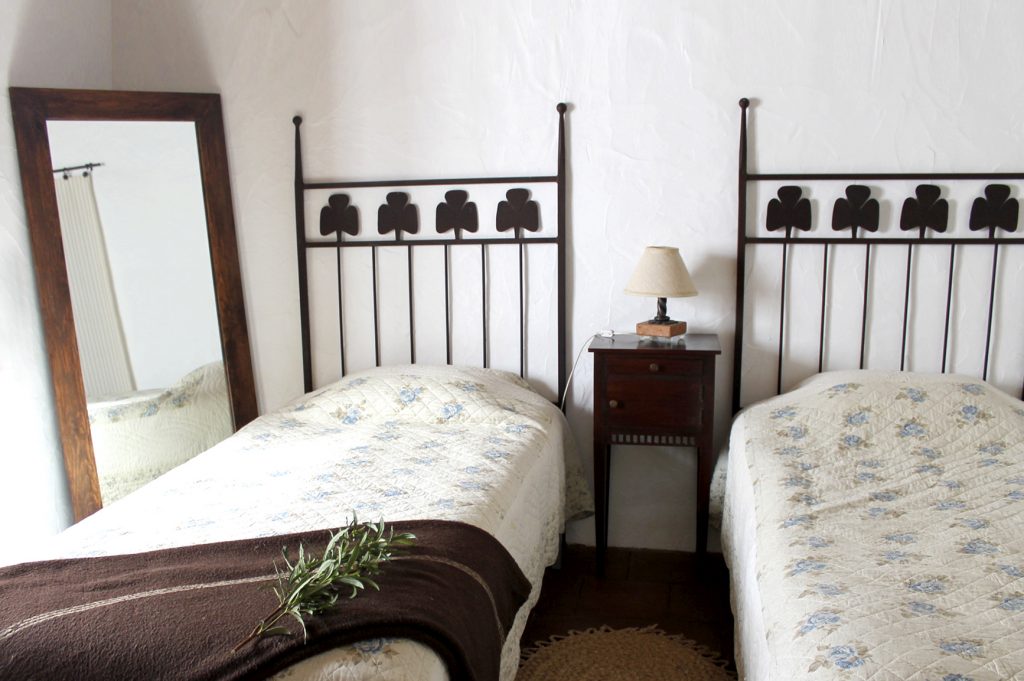 Quarto com camas duplas, roupeiro. O mais próximo do tradicional quarto alentejano, com o conforto que a atualidade permite. Uma janela convida-nos a contemplar a traça das casas tradicionais, a ouvir as sinetas das ovelhas, que mais abaixo, no campo, pastam.